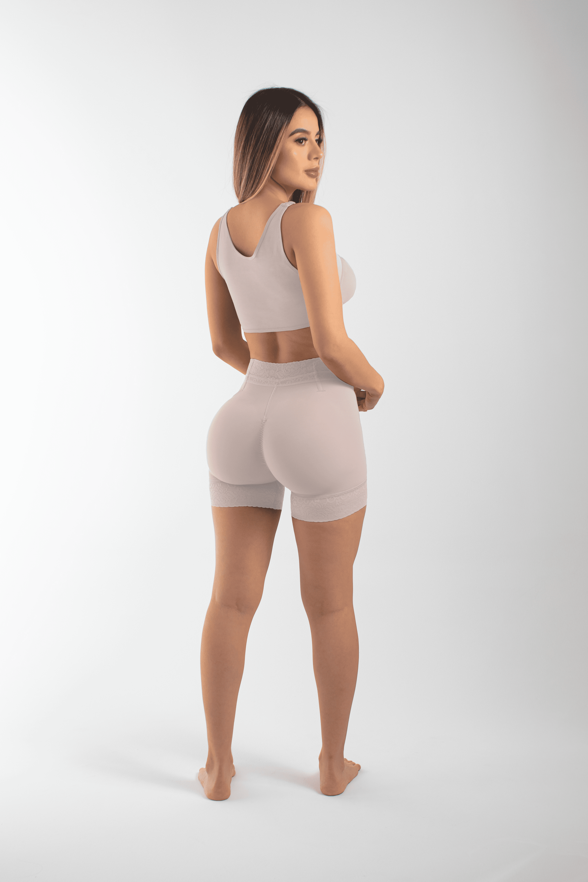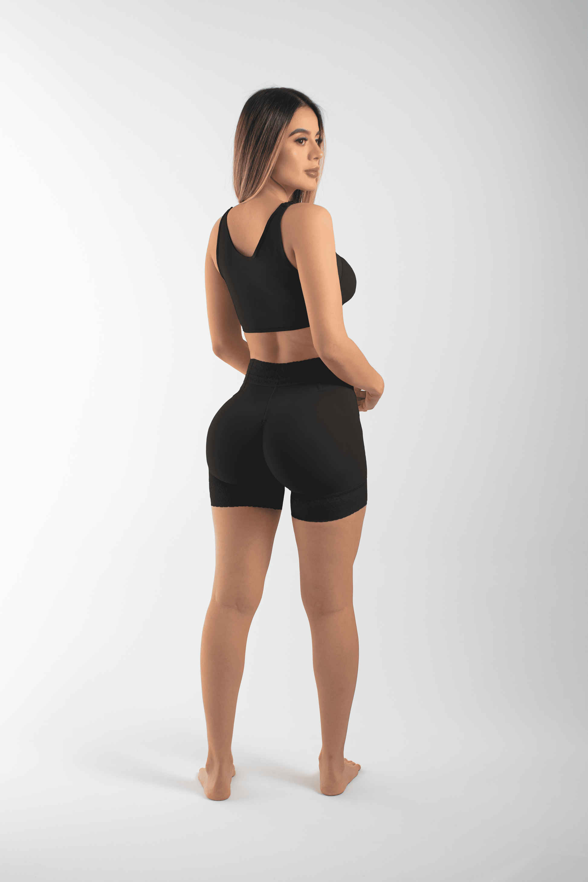 The Nancy set is freedom and light compression in one. Featuring a top with an adjustable lace-up front and high-waisted shaping shorts, it gives just the right support while letting your body breathe.